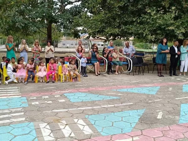 За всяка възрастова група има самостоятелна площадка с пясъчници, сенници, беседки и комбинирани съоръжения за игра. Изградени са и външна и вътрешна площадка по безопасност на движението.
